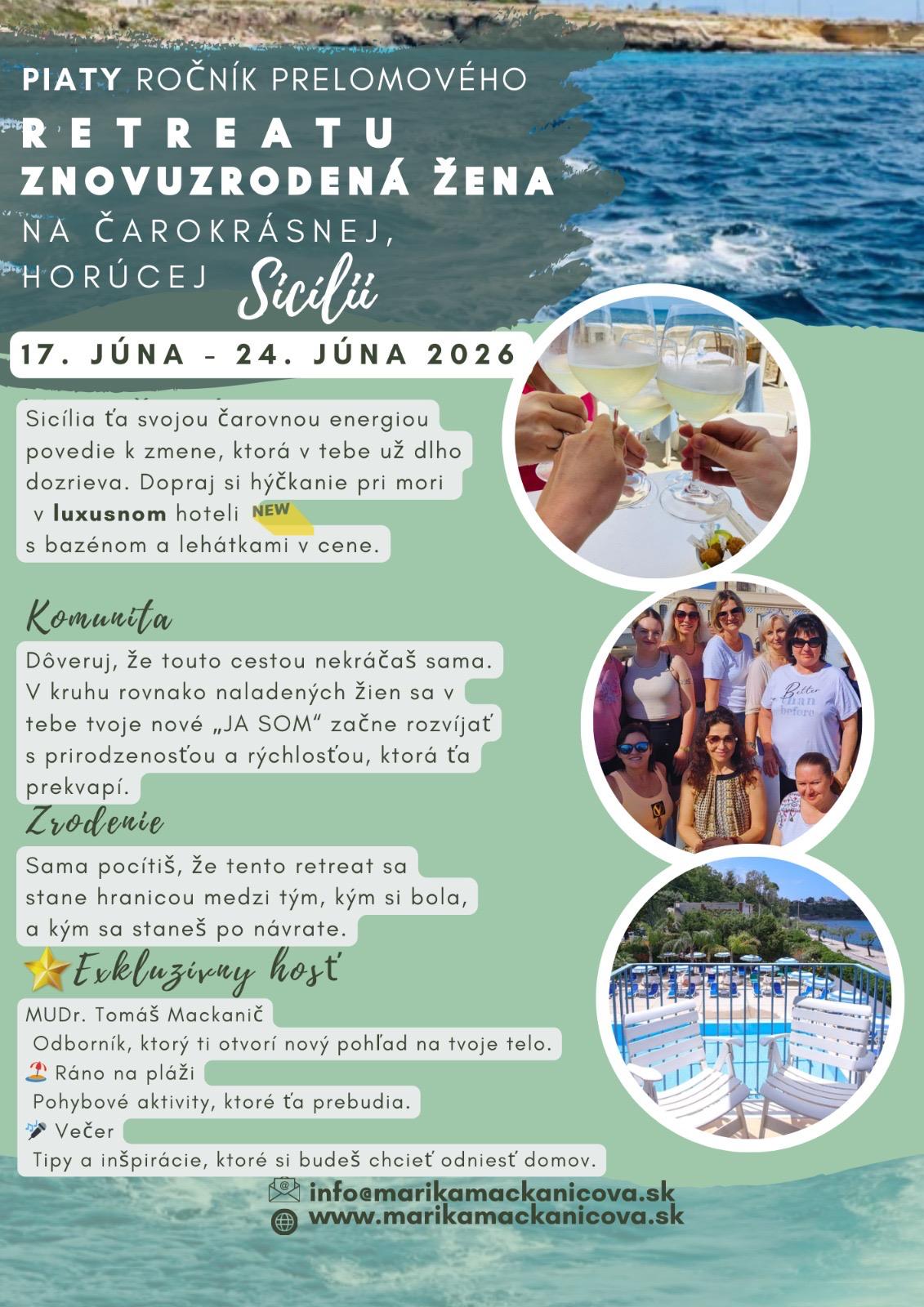 Po štyroch rokoch nezabudnuteľných pobytov na Sicílii ťa pozývam na nové, ešte čarovnejšie miesto. Ak cítiš, že ťa každodenný kolotoč pohlcuje, že len „funguješ“ na výkon a tvoj vnútorný hlas zaniká v hluku povinností – tento čas patrí tebe.